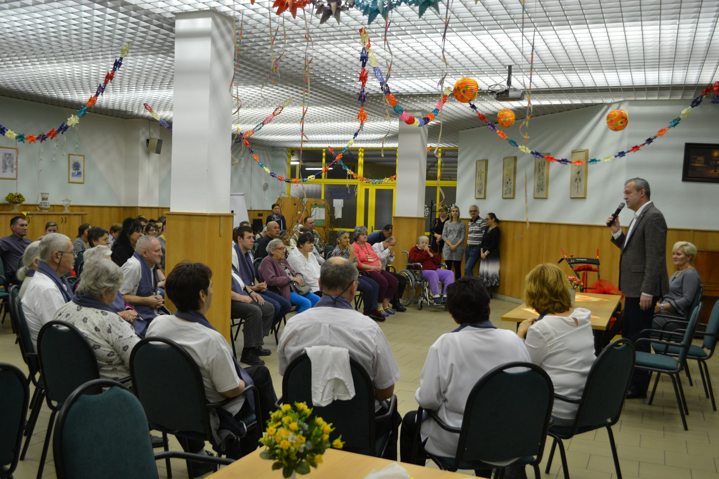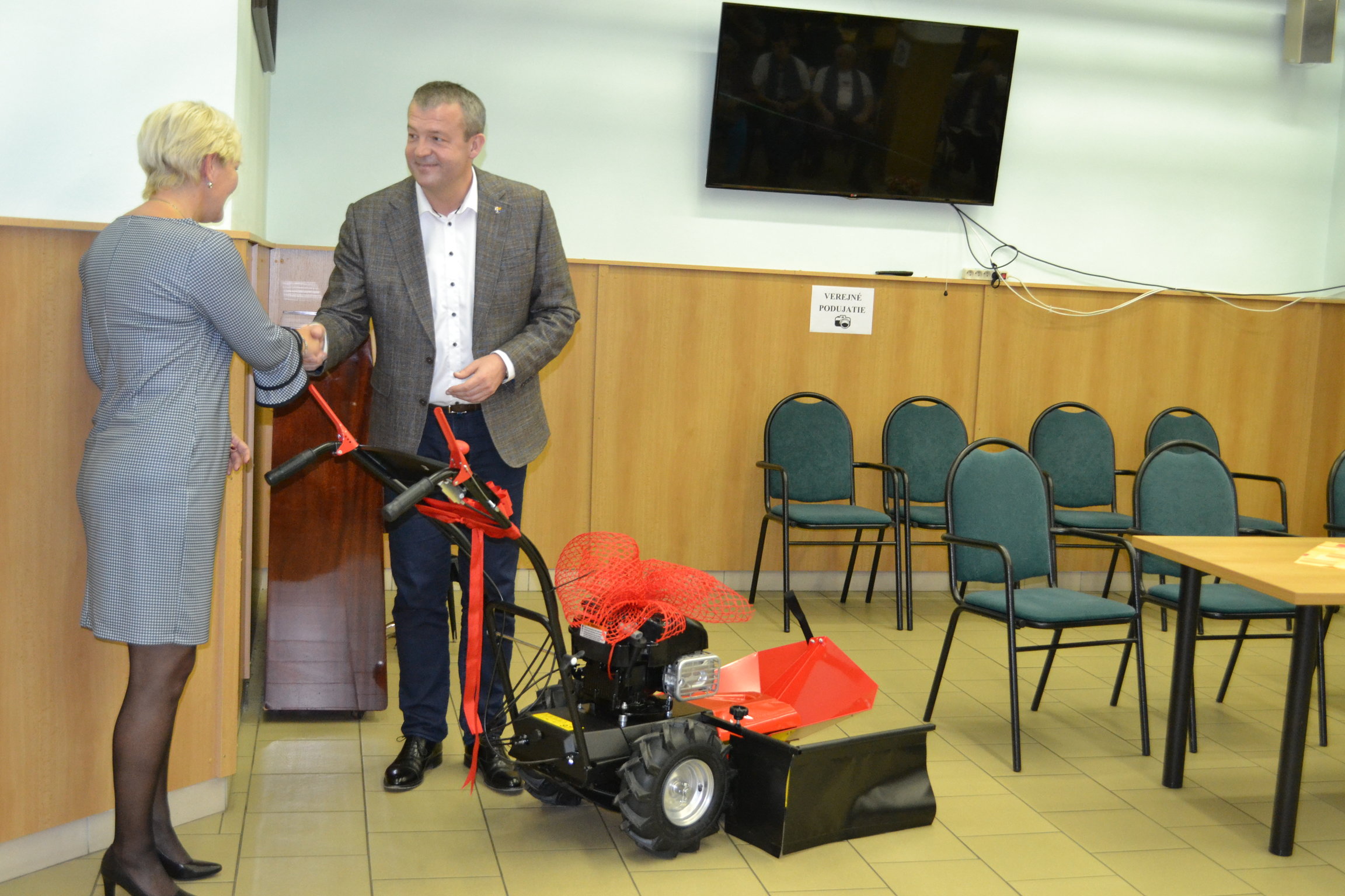 V stredu 13. novembra 2019 v popoludňajších hodinách navštívil naše zariadenie predseda TSK a poslanec Národnej rady SR pán Jaroslav Baška. V mene svojho kolegu, poslanca Národnej rady SR pána Róberta Fica pozdravil všetkých klientov zariadenia a vyjadril úprimnými slovami vďaku zamestnancom, ktorí sa starajú o všetkých obyvateľov nášho zariadenia. Pán Róbert Fico sa rozhodol prispieť nášmu zariadeniu vecným darom – ručnou motorovou kosačkou. Keďže sa z pracovných dôvodov pán Fico nemohol zúčastniť osobne odovzdania tohto daru, predseda TSK pán Jaroslav Baška slávnostne dar odovzdal riaditeľke zariadenia, ktorá vyjadrila úprimnú vďaku za seba a za všetkých obyvateľov CSS – Juh. Klienti CSS zaspievali p. Baškovi ľudové piesne s doprovodom gitary a odovzdali mu darček v podobe výrobkov klientov zariadenia.